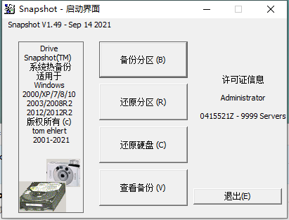 本次为大家分享的是SnapShot_v1.49汉化绿色版 系统备份/还原
