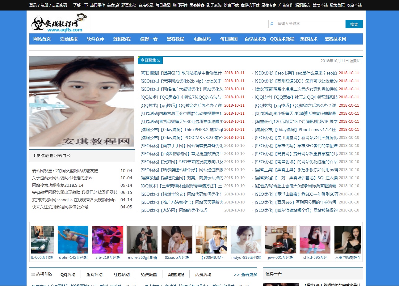大气漂亮的安琪教程网、QQ教程网源码带数据