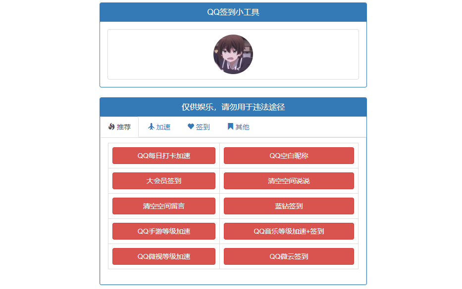 本文是QQ签到小工具网页版源码 含等级加速和各种签到等