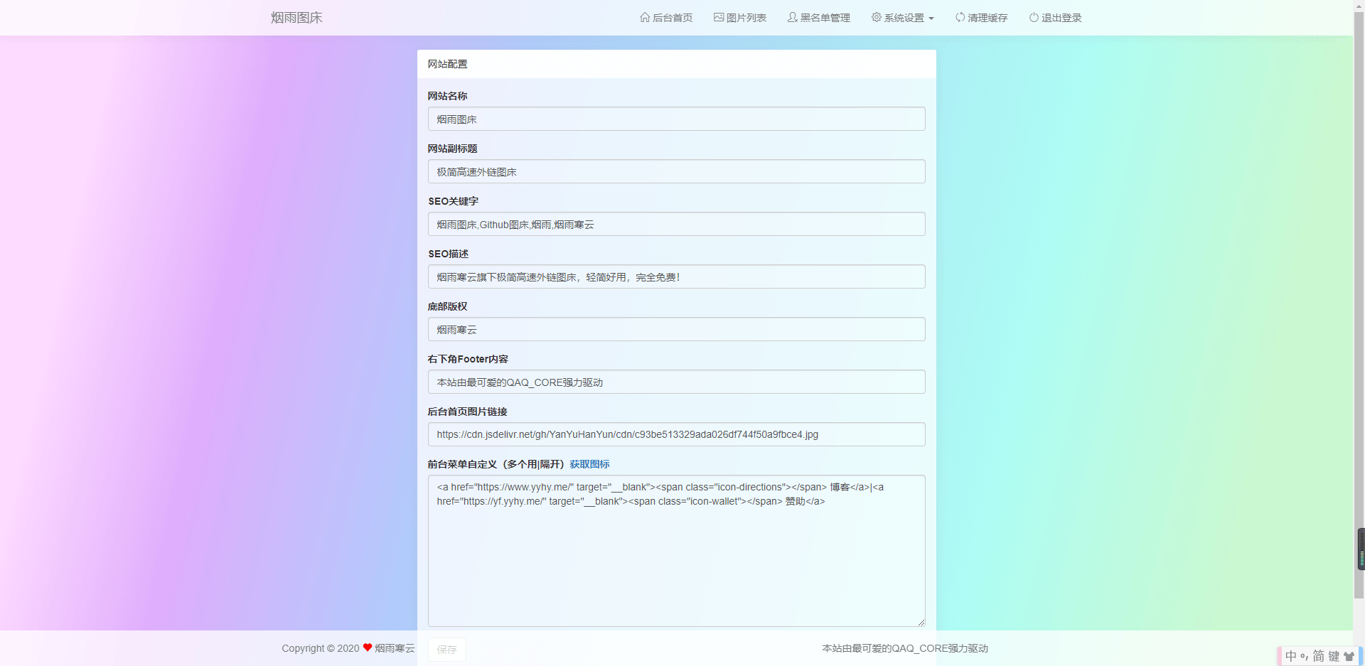 烟雨图床程序这是我目前为止看到的唯一一款开源的既可爱又简洁的图床程序了,它基于烟雨写的QAQ_CORE开发,采用MVC架构编写而成,使用Github进行文件储存,由JSDelivr提供全球CDN加速服务,它很可爱。她很美…