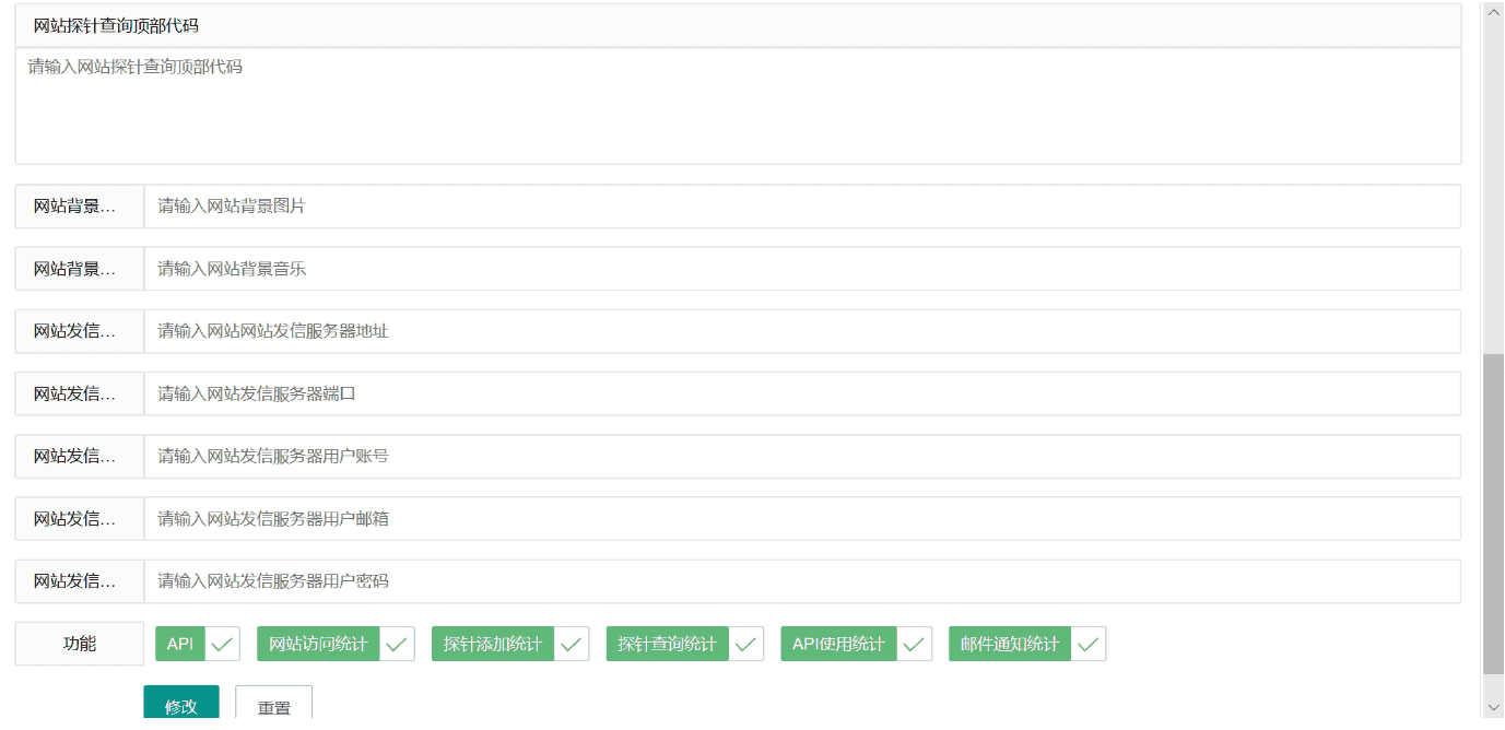 自定义设置探针页面,探针功能,QQ分享,通知邮箱等功能。